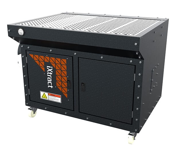 The iXtract range of downdraft benches have been specially designed to enhance workplace safety by effectively capturing and controlling airborne contaminants generated during various industrial processes. These benches operate on the principle of downdraft ventilation, where air is drawn downward through the work surface, carrying with it any particulates, fumes, or dust generated during the work process. The perforated grates on the surface of the downdraft bench allow the airflow to pass through and effectively capture the contaminants.