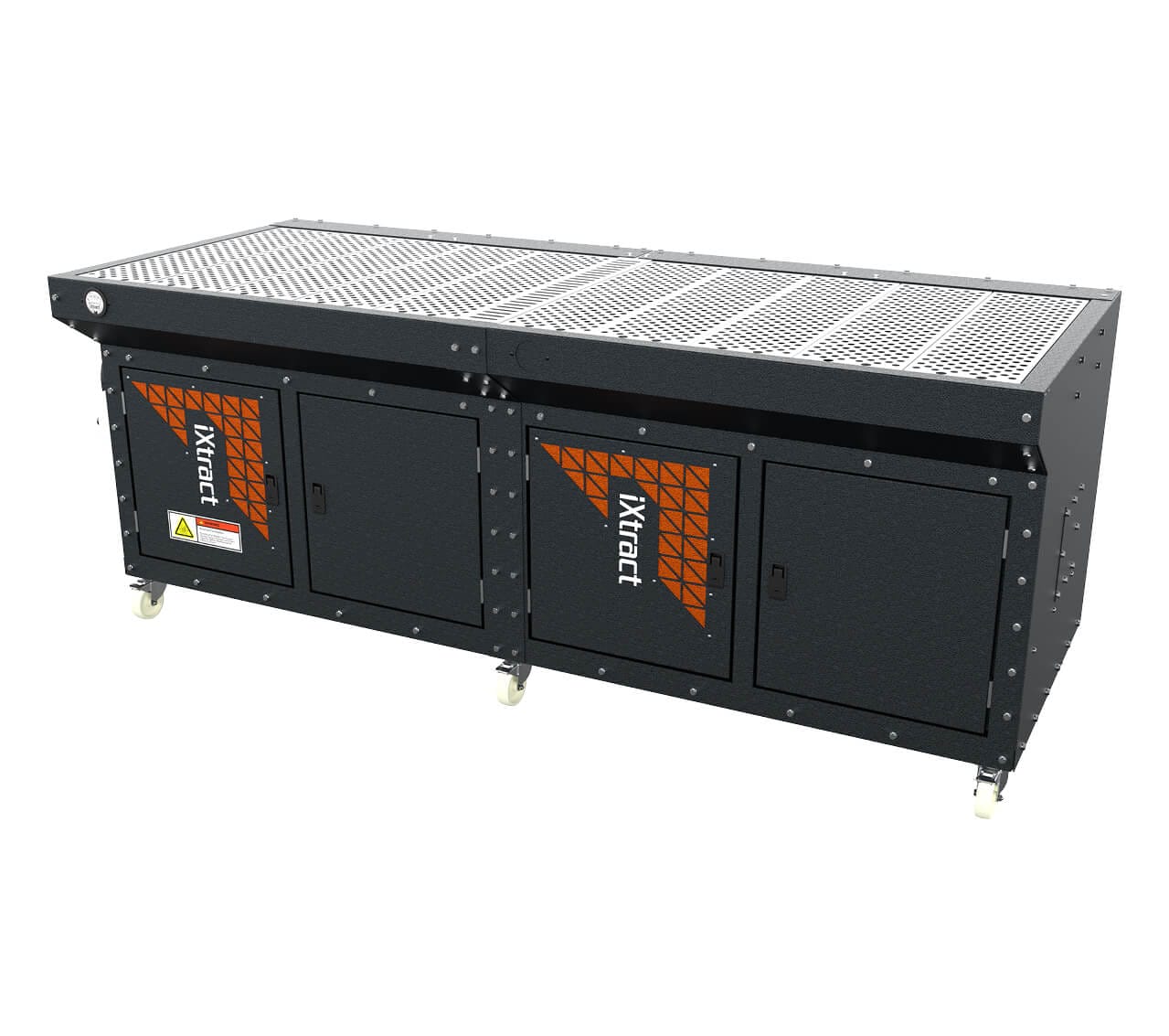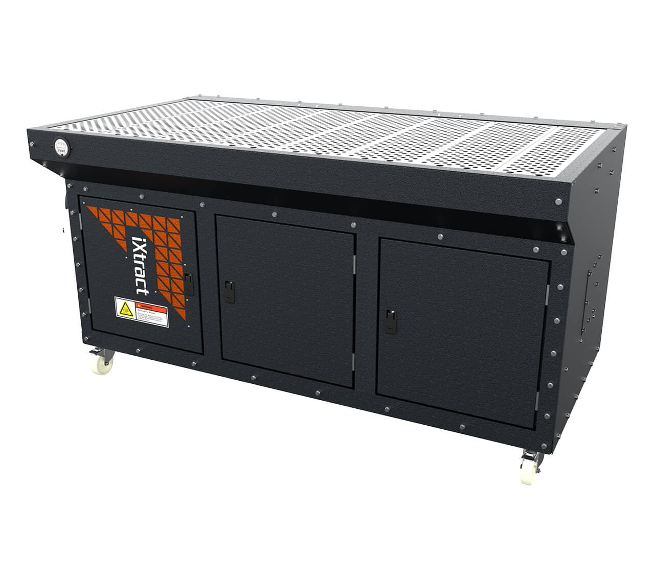 Designed for localised extraction of dust and fumes from grinding, welding and sanding applications. The iXtract range of highly durable, premium quality standalone downdraught benches with integrated fans are available in either 1.2, 1.8 and 2.4 meter widths and with optional backdraught and adjustable sides.